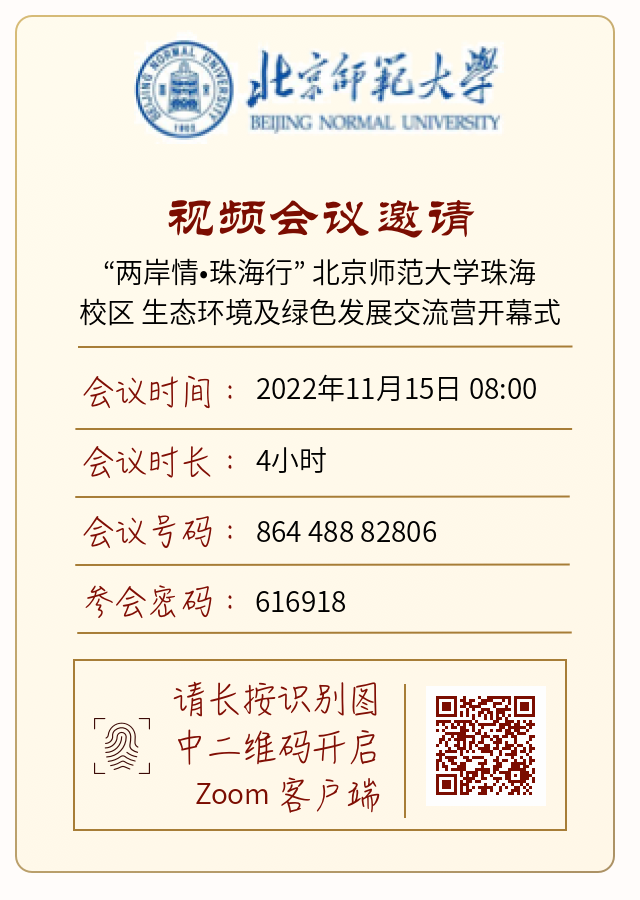 由北京师范大学珠海校区举办的“生态环境及绿色发展交流营”拟于2022年11月15-18日以线上和线下会场形式举办。