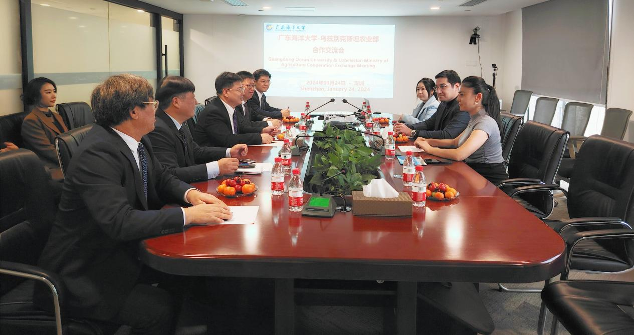 1月24日下午,乌兹别克斯坦-中国投资论坛前夕,为了落实中乌两国元首签署并发表的《中华人民共和国和乌兹别克斯坦共和国联合声明》、《中国-中亚峰会西安宣言》和《中国-中亚峰会成果清单》以及习近平总书记在中国-中亚峰会上的主旨讲话精神,我校党委书记杨洲应邀与乌兹别克斯坦共和国农业部办公厅主任Anvar Ubaydullaev在深圳举行会谈。国际交流与合作部部长陈进军、滨海农业学院院长郑殿峰、副院长马驿和江行玉教授、农学系主任沈雪峰教授、学院党政办主任王继全陪同参加。