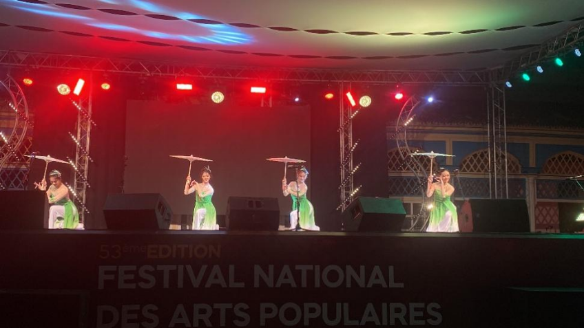 第53届摩洛哥全国民间艺术节在摩洛哥红色之城马拉喀什市举行,中国高校代表团与摩洛哥表演团队联合进行三场演出和一场巡游,演出规模盛大,共计65支表演团队参与了演出和巡游。影响力度大,宣传范围覆盖该市主干道路及繁华地段,受到了摩媒体、CGTN、摩国家广播电视台、摩通社、2M等媒体的广泛关注及报道。