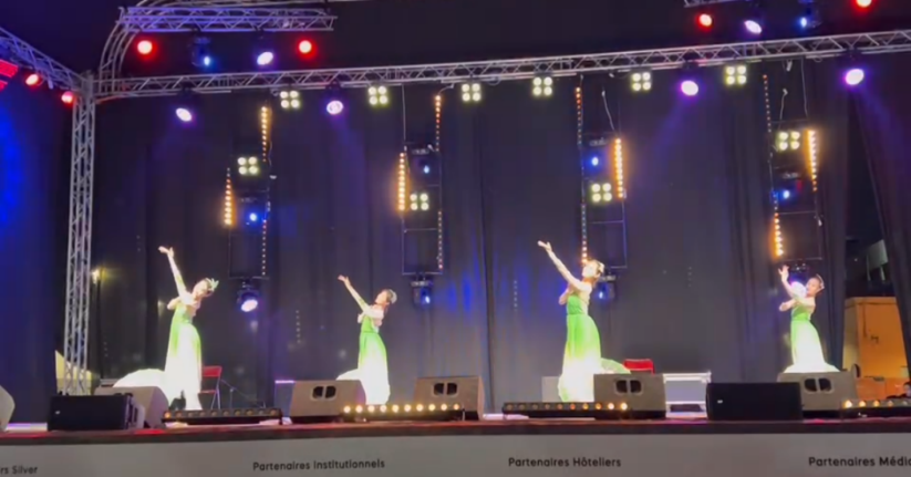 我校学生在杰马夫纳广场首场演出中演绎《茉莉花开》作品