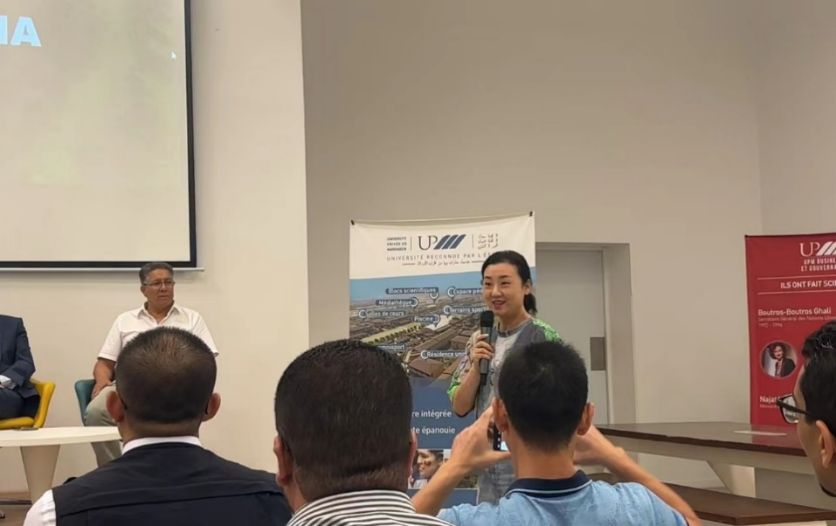 7月3日上午,我校师生克服旅途劳顿,随中北非国际教育创新联盟到达摩洛哥马拉喀什私立大学进行文化交流活动。马拉喀什私立大学校长及副校长带领学校师生对其表示热烈欢迎。马拉喀什私立大学国际交流部部长向中方师生介绍学校办学情况,中方大学教师代表依次向师生进行学校介绍,其中我校中歌艺术学院严嘉老师发言,马拉喀什私立大学校方对我校规模及学科建设表示赞叹。