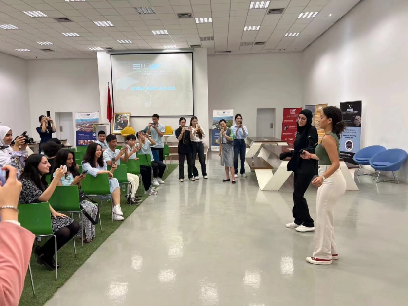 随后中方及马拉喀什校方师生进行了深度交流。我校学生现场展示了傣族舞蹈和蒙古族舞蹈,马拉喀什校方学生展示当地的传统舞蹈后,就摩洛哥民俗文化与舞蹈编导专业结合编创的可能性进行深入探讨,现场气氛十分热烈。中北非国际教育创新联盟负责人及马拉喀什师生高度赞扬了我校学生的展示,并期待之后与我校的深度交流学习。